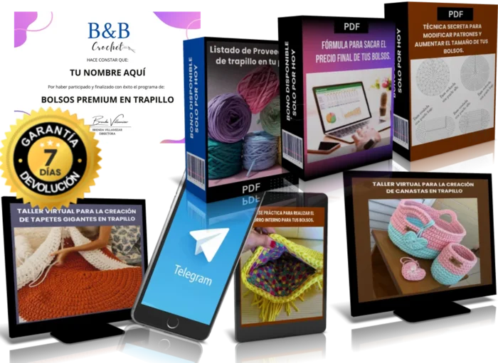 Solo para ti que llegaste hasta aquí, te invito a que pruebes el curso por 7 días y mires todas las clases y los bonos de regalo, responderé todas tus dudas y, si no aprendes las técnica para tejer o no es lo que esperabas, me escribes al correo electrónico que te dejaré dentro del curso y te reembolsare el 100 % de tu dinero (cada centavo).